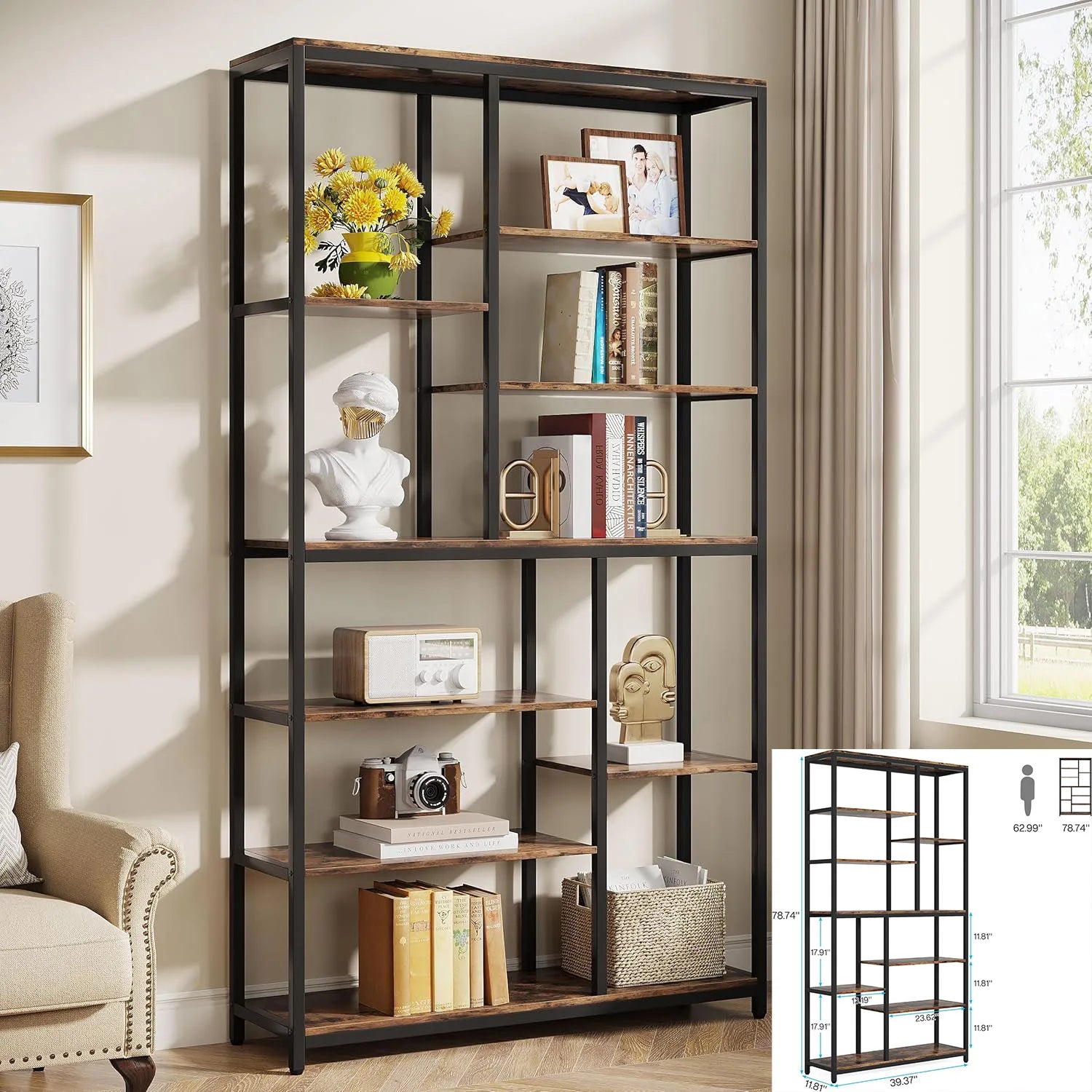 Bookshelf, Industrial 5-Tier Etagere Bookcase